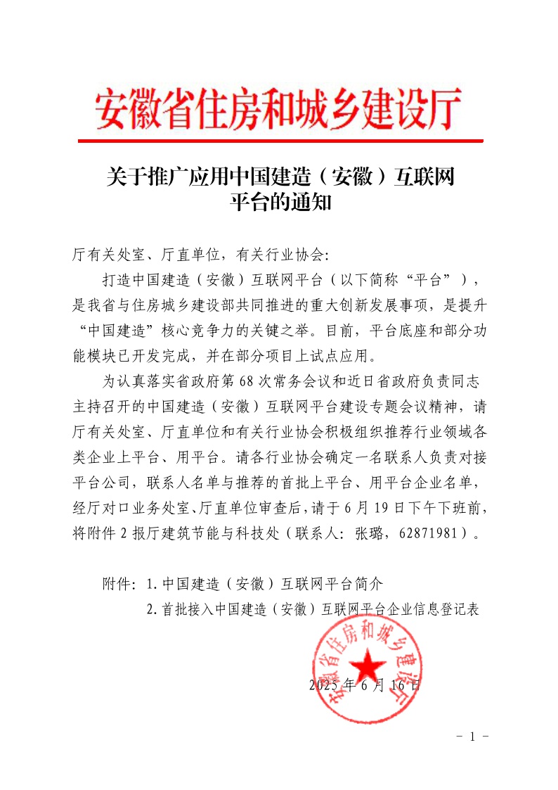 省部共建的中國建造(安徽)互聯(lián)網(wǎng)平臺(tái)目前已完成平臺(tái)底座和部分功能模塊的開發(fā),并在部分項(xiàng)目上試點(diǎn)應(yīng)用。為認(rèn)真落實(shí)省政府有關(guān)領(lǐng)導(dǎo)專題會(huì)議精神,現(xiàn)征集行業(yè)領(lǐng)域各類企業(yè)首批接入平臺(tái)。請(qǐng)各會(huì)員單位積極參與,填寫企業(yè)信息登記表(附件2)后發(fā)送至郵箱1343548194@qq.com。